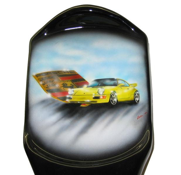 Der Luftpinsel macht vor keinem Malgrund halt: Multimedia-Objekte, Gusseisen, Kunststoff, Aluminium oder Chrom. Hier werden Unikate geschaffen.